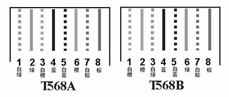 EIA/TIA的布線標(biāo)準(zhǔn)中規(guī)定了兩種雙絞線的線序568A與568B