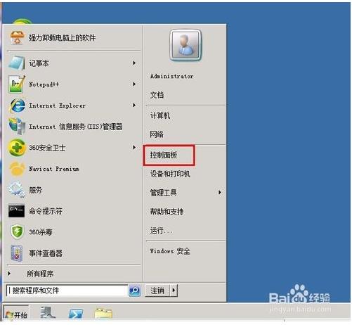 4.打開(kāi)服務(wù)器的遠(yuǎn)程界面,打開(kāi)開(kāi)始菜單,找到控制面板并打開(kāi)。